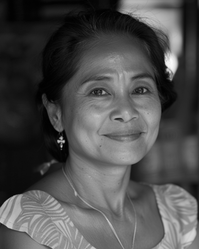 【植毛の職人:フェイ(フィリピン工場 熟練技術者)】 設計図をもとに、一本一本の毛に魂を込めて植毛するのは、坂本さんが信頼を置くフィリピン工場のフェイさんです。熟練した彼女の手仕事が、既製品には出せない繊細な毛流れを生み出します。